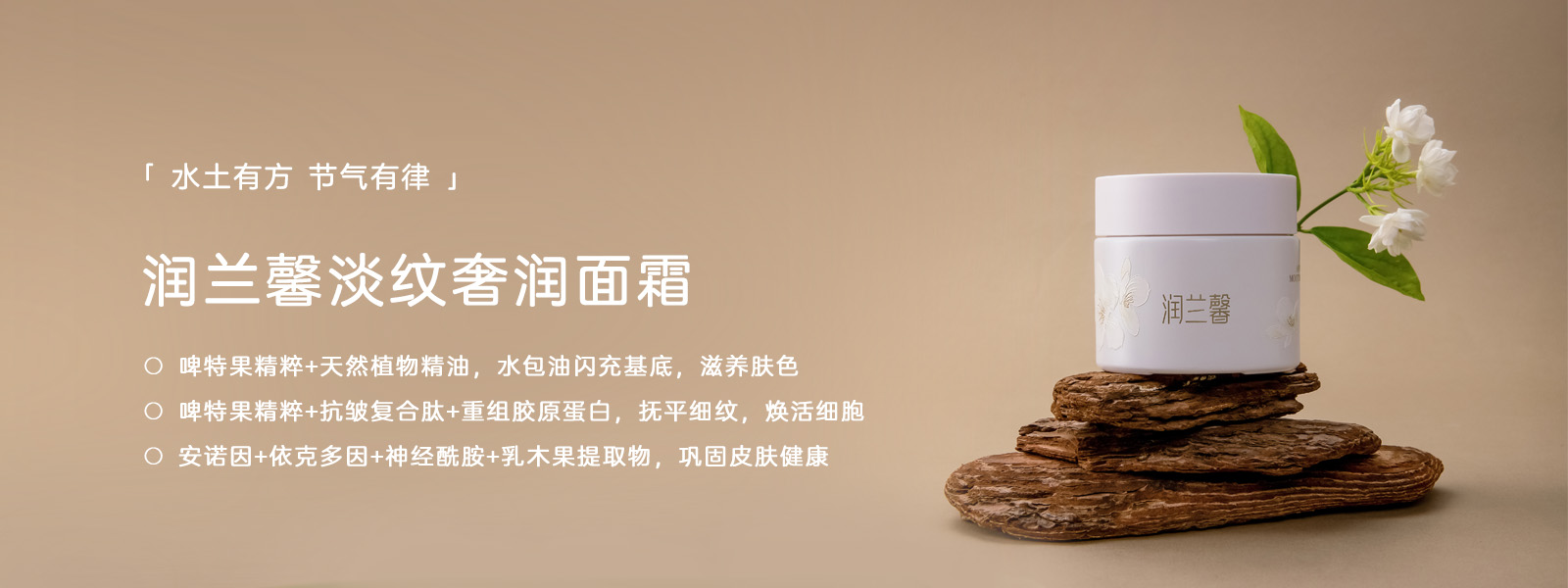 润兰馨是华熙生物旗下聚焦气候节律的科学护肤品牌,品牌以西北高原珍稀植物“啤特果”为核心,结合尖端发酵科技,历经5年研究,成功提取啤特果发酵精粹,针对特殊环境下的皮肤光老化问题,提供纯净、高效的护肤方案。润兰馨坚信“万物皆有因时”,以植萃本能和定向发酵科技,应对四季不同气候带来的肌肤挑战。
